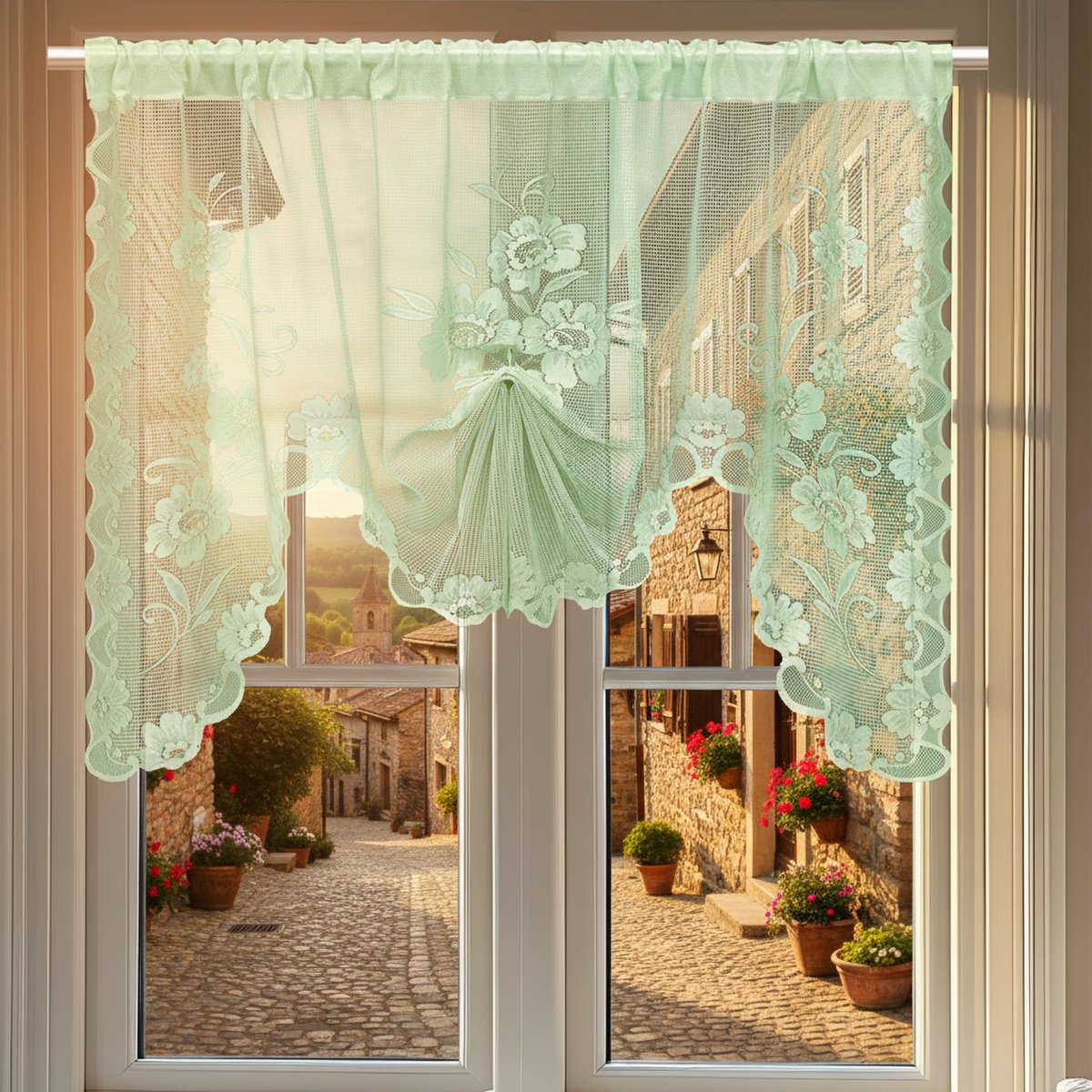 Rideau en dentelle blanche à papillon avec cordon de serrage