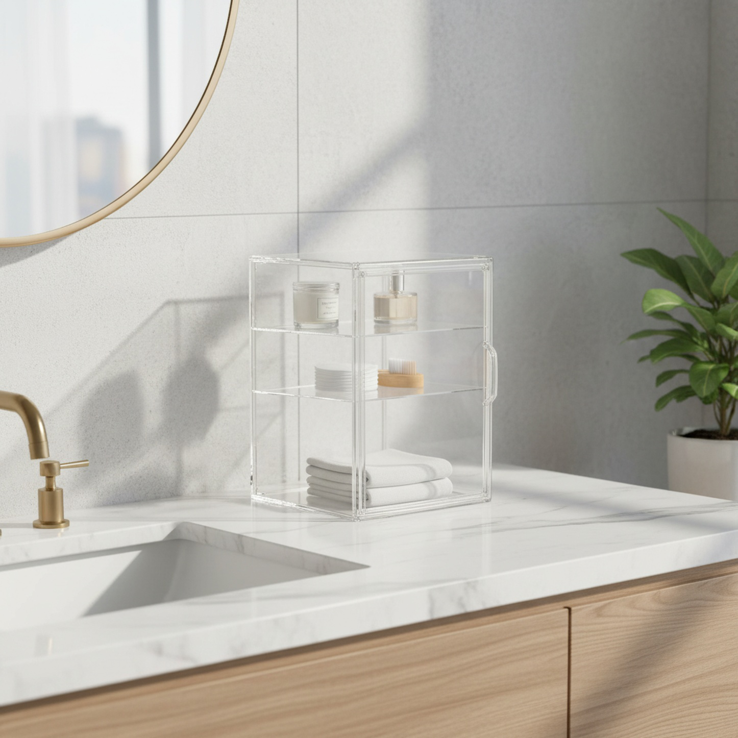 Boîte d'exposition en acrylique pour figurines, boîte transparente avec plaque centrale 2 pièces